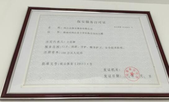 鳳臺保安服務(wù)有限公司成立于2007年,是經(jīng)鳳臺縣公安局行政許可的經(jīng)營企業(yè),注冊資金1000萬元,具有國企背景(安徽州來控股有限公司),更是一家朝氣蓬勃的年輕企業(yè)。公司主營勞務(wù)派遣、保安服務(wù)、武裝押運(yùn)等。 >>了解更多